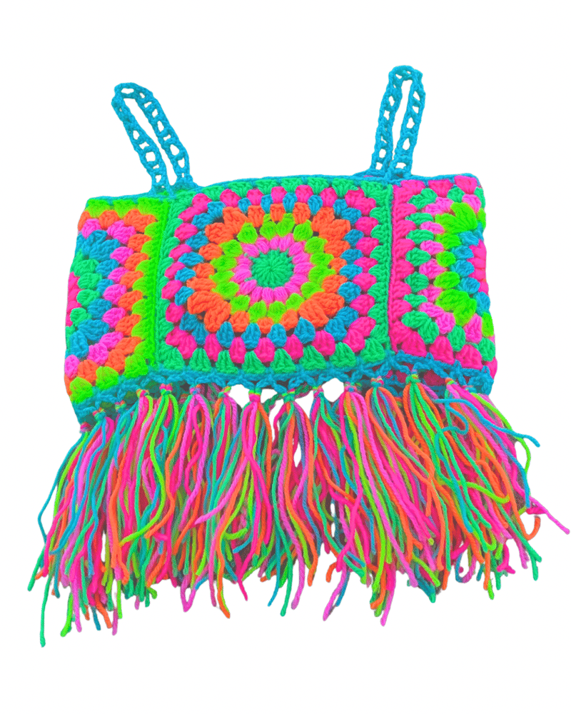 A handmade crochet top designed for sunny days and statement outfits. Finished with tassels for added texture and movement, each piece is carefully made to order.